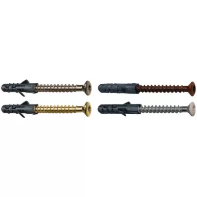 Vis à plinthe acier, tête fraisée bombée, entrainement T-Drive T15 avec cheville nylon PS 5 prémontée.