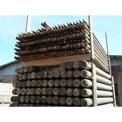 Palissade ronde en Pin sylvestre autoclavé vert, traité cl. lV, 2 bouts chanfreinés.