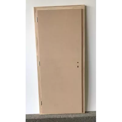 Elément de porte Optima El30 à recouvrementEpaisseur 45 mm, 2 faces fibre bois dur, HDF, alèses Acajou, classe clim. 2A sur cadre en Chêne abouté à peindre 90 x 45 mmSans seuil, possibilité de couper en bas 100 mm, joint ignifuge + antibruit noir installé dans une rainu3 fiches tri - dimensionnel 11R-15.92, gâche de sécurité rainée, serrure Glutz 1102 RZ/60/8.Plaquette homologation n° 23337 comprise