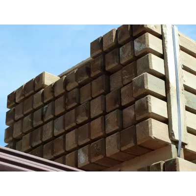 Tuteur carré en Pin sylvestre autoclavé vert, tête droite, raboté lisse, 1 bout pointu, 1 bout chanfreiné.