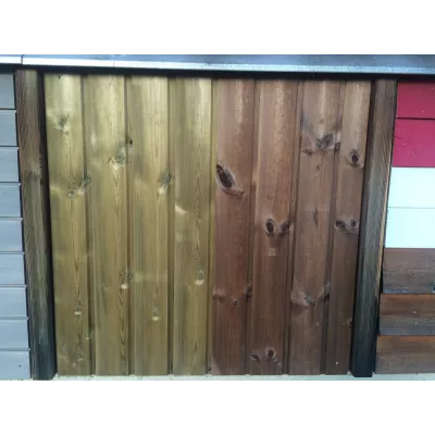 Lames Pin du nord autoclavées, hydrofugées, profilées en bout, reséchées pour les façades.