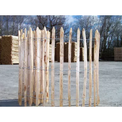 Ganivelle Châtaignier en rouleau, en échalas fendus, pointés en bout, espacement de 55/65 mm